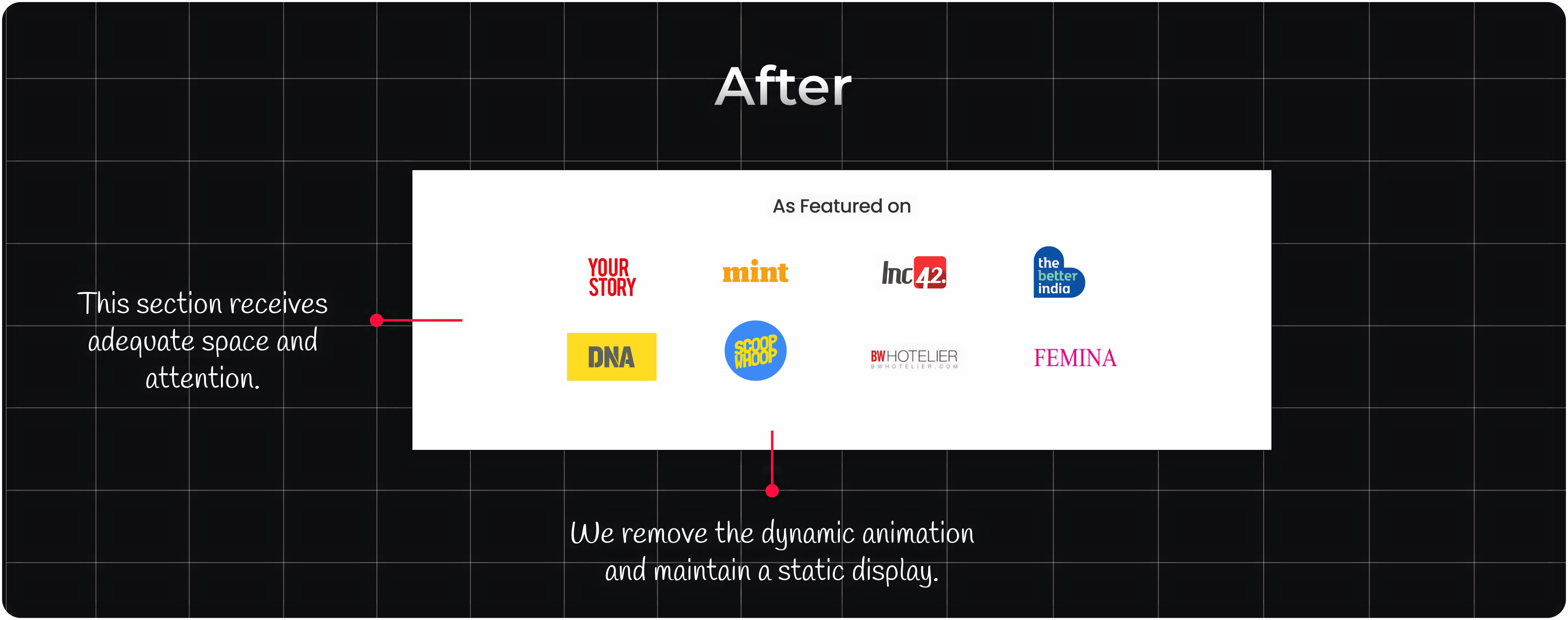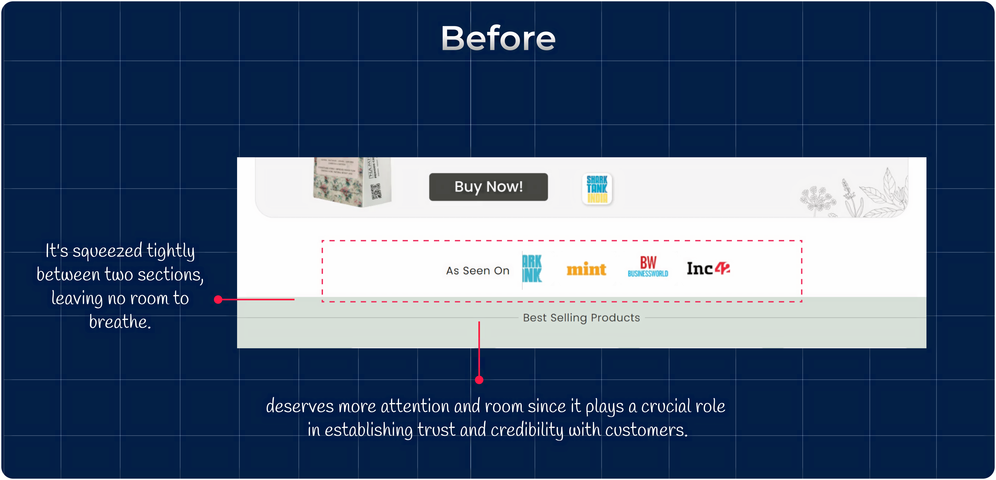 - As featured on section deservers more attention and space since it plays a crucial role in establishing trust & credibility with the customers of brand and its Products.