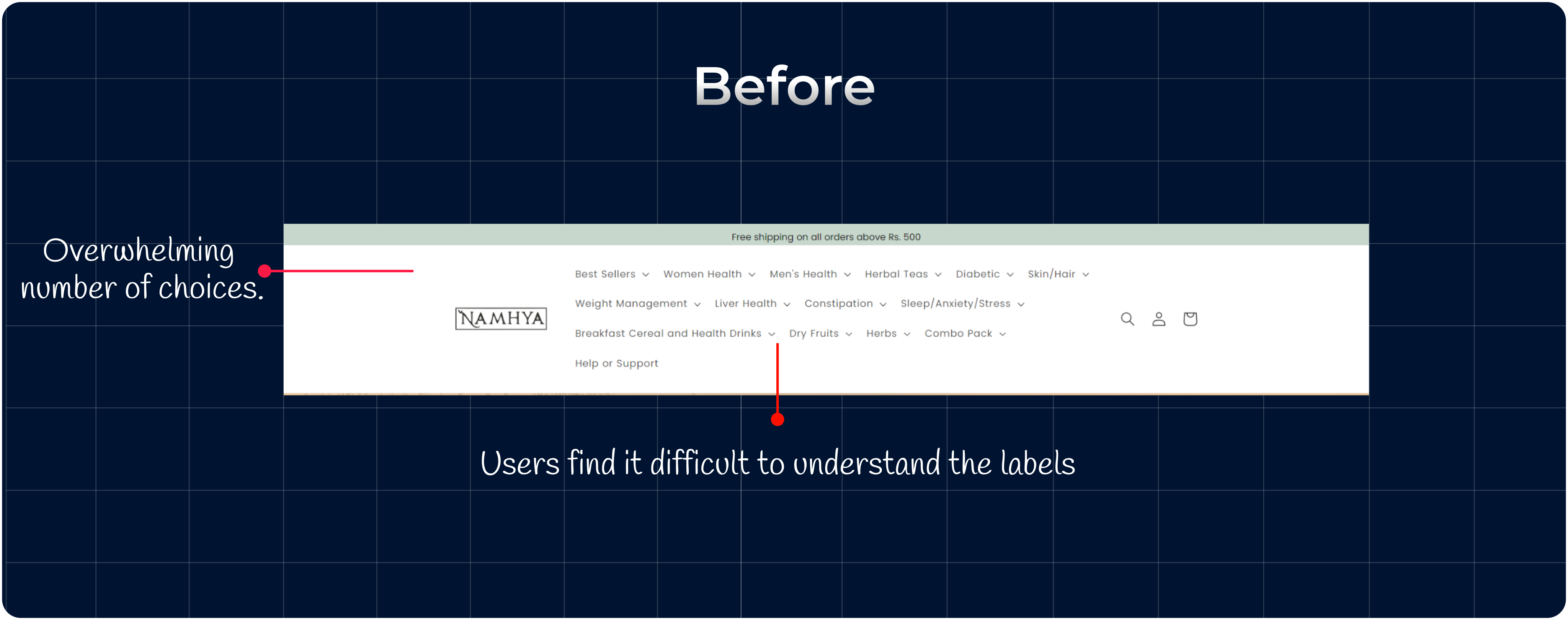 2. Easy Navigation-We have redesigned Namhya Foods navigation bar to make it easier for users to explore their website and find what they're looking for easily.