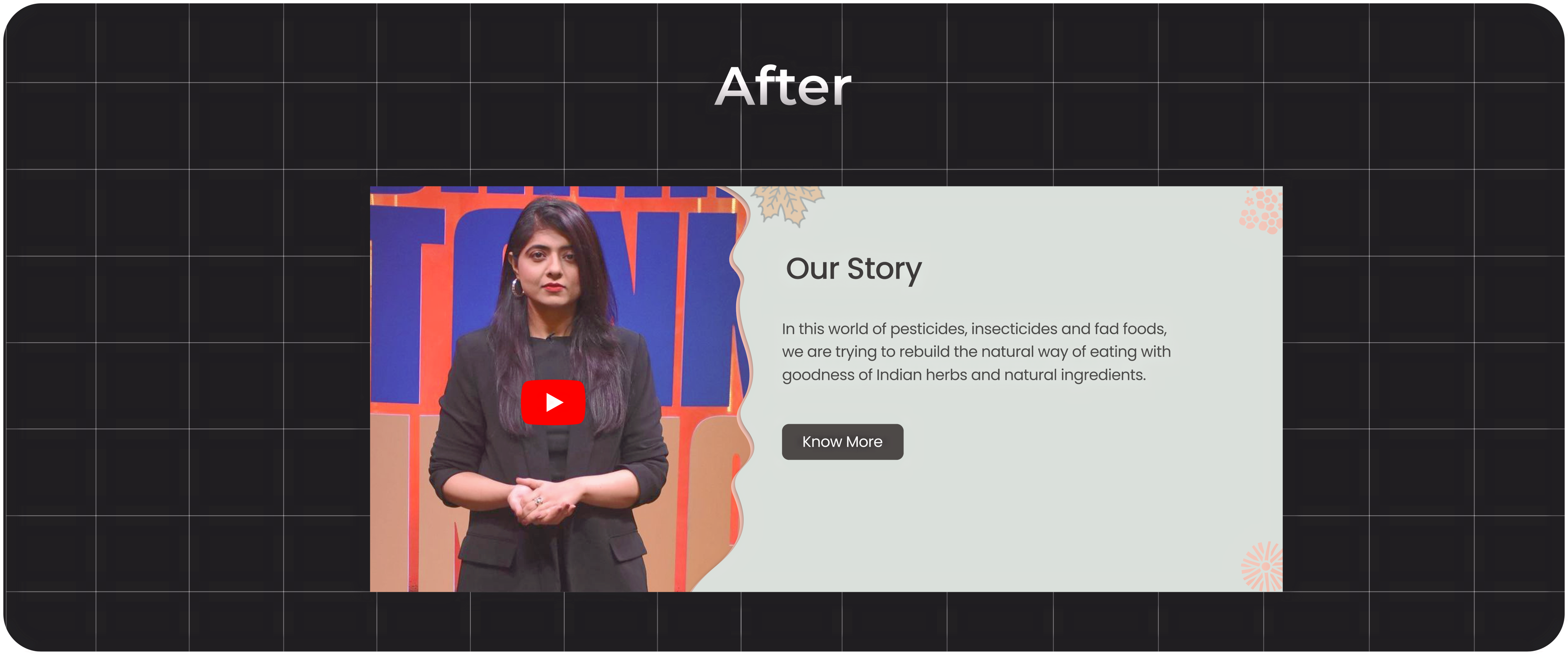 - Try to make it more scannable: By separating the text and video into their own spaces, we have made it easier for users to scan through our story section.