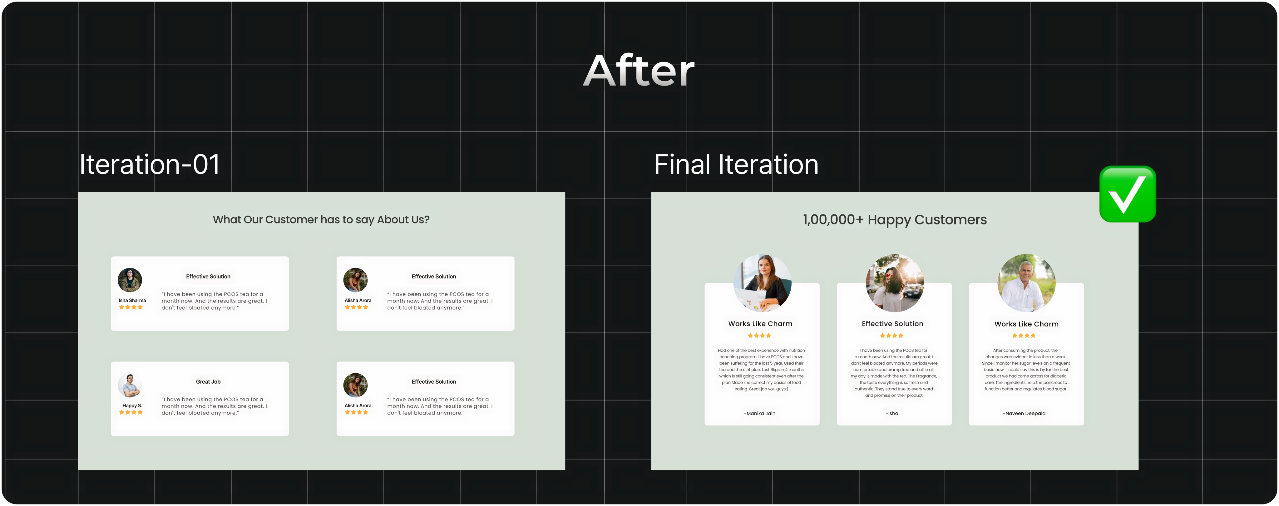 - To make the customer review section more prominent, we named it "1,00,000+ Happy Customers". This bold and attention-grabbing name clearly communicates the purpose of the section and highlights the number of customers who have enjoyed Namhya's products.